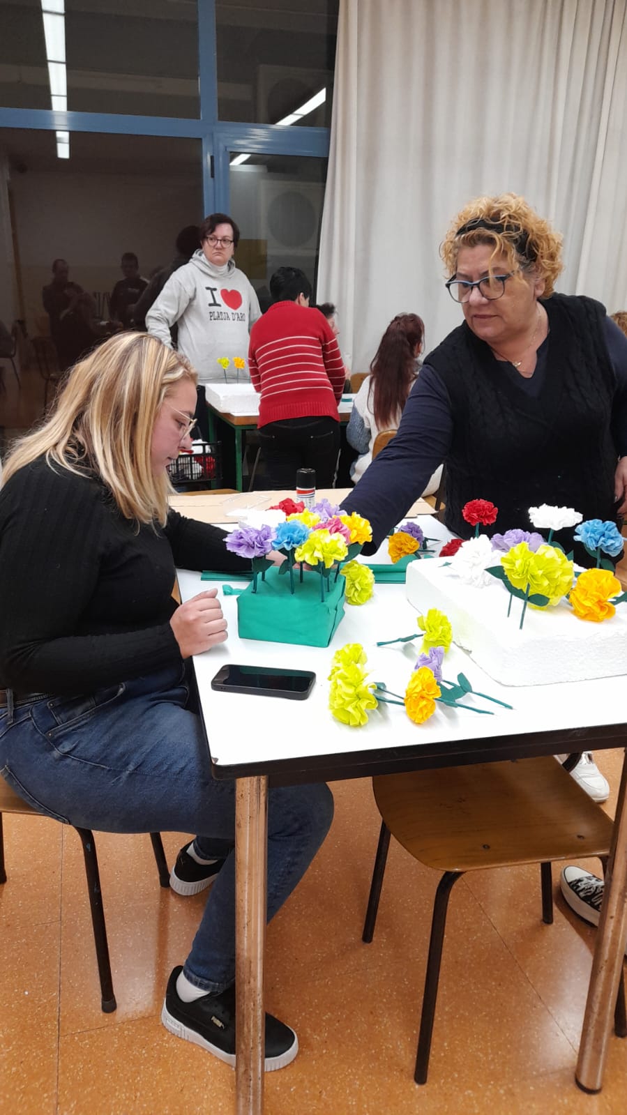 ESTUBIMOS HACIENDO UN TALLER DE FLORES DE PAPEL , LOS CHIC@S SE LO PASARON GENIAL Y MUY DIVERTIDO