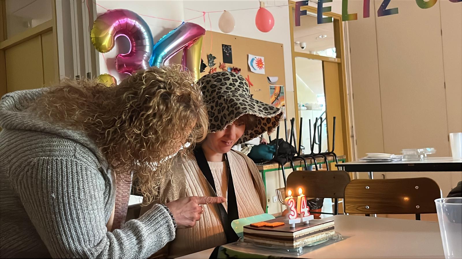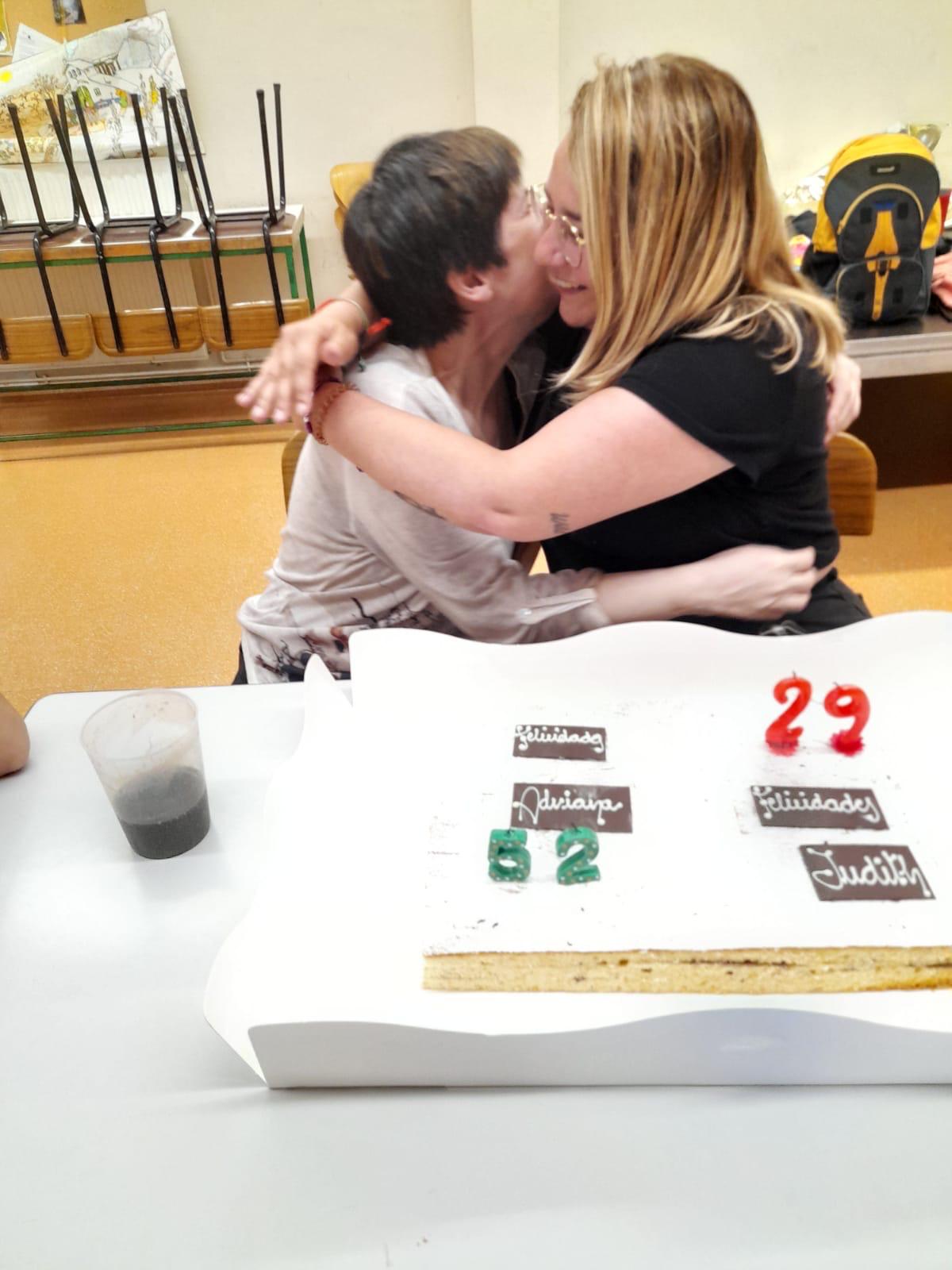Se celebraron cumpleaños de la Adriana y de la monitora coordinadora Judith y se lo pasaron muy bien con todos los regalos que le hicieron , pusieron música y bailaron